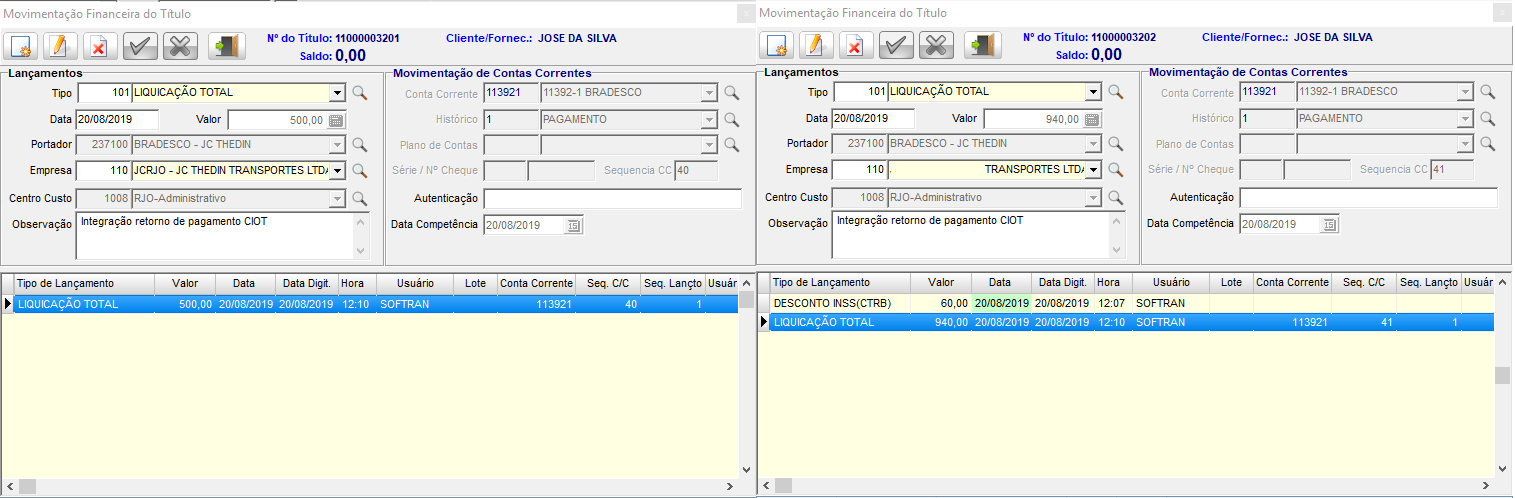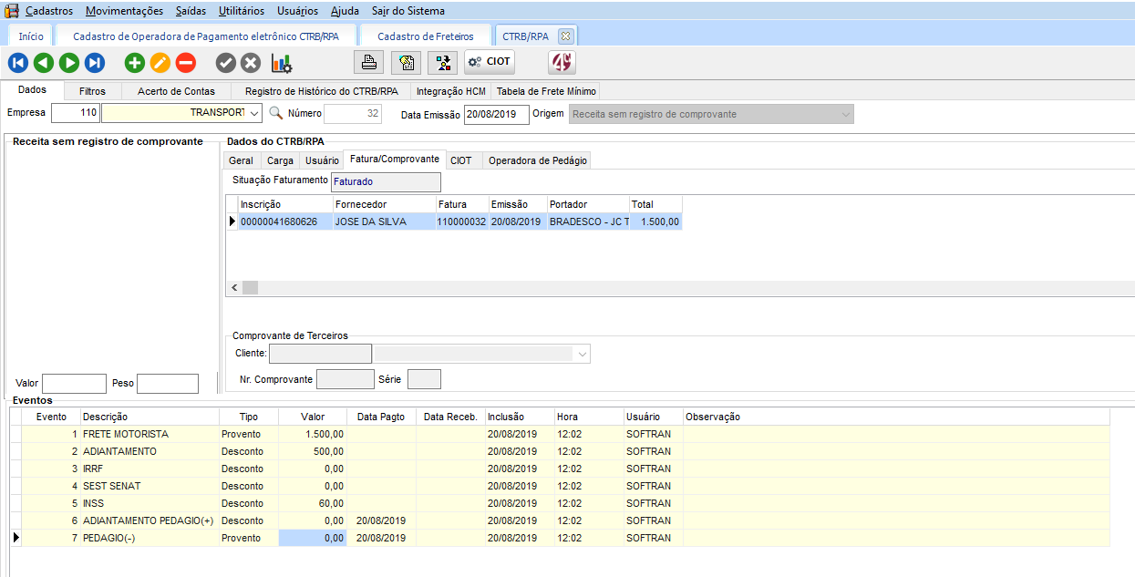 Nas configurações gerais do módulo FTR, consistir nas novas opções de baixa automática dos títulos de adiantamento e saldo, após a confirmação de envio do CIOT.