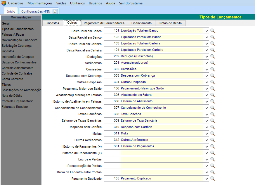 Serão realizadas as seguintes movimentações financeiras para o cancelamento ou interrupção da viagem: