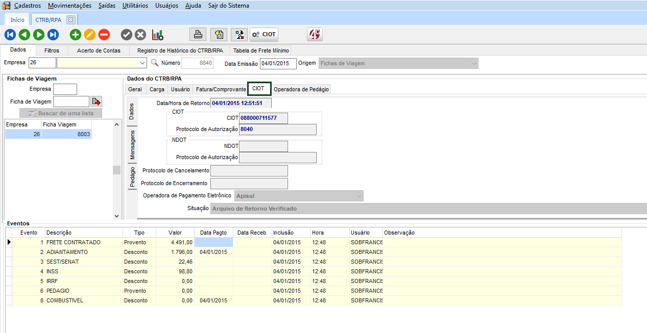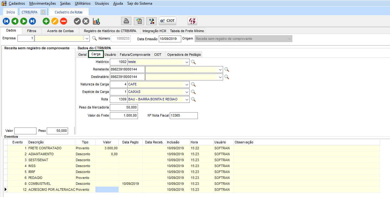 Na integração com o CIOT, permitir que a natureza da carga esteja de acordo com a tabela de frete que será utilizada para o cálculo. Para esta funcionalidade é necessário utilizar módulos CAS (executar com data de 15/07/19, 19/07/2019), EXP e FTR (a partir de 3.17.26)