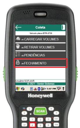 Ao não existirem mais pendências, o usuário poderá executar a rotina de fechamento do carregamento da coleta através do item 4 do menu “Carregamento de Coleta”.