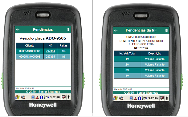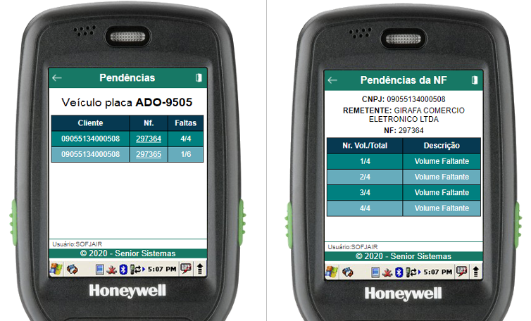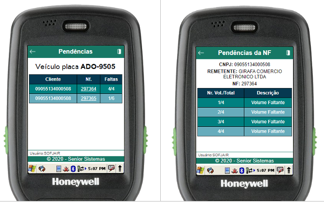 Dentro da rotina de pendências, serão listadas todas as NFs pendentes da descarga da gaiola. Para um detalhamento completo dos itens de uma NF pendente, basta clicar na linha da NF a qual se deseja mais detalhes.