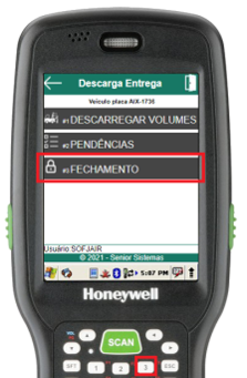 Ao não existirem mais pendências, o usuário poderá executar a rotina de fechamento de descarga da entrega através do item 3 do menu de descarga de entrega.