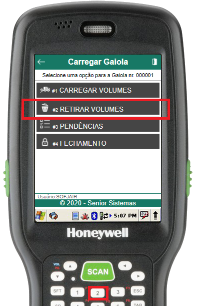 Caso algum volume seja carregado na gaiola em questão de forma equivocada, a rotina de retirar “Retirar Volumes” pode ser utilizada através do segundo item do menu “Carregar Gaiola”.