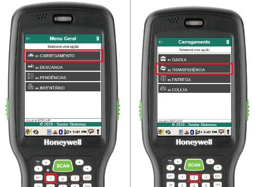 A rotina de carregamento de transferência pode ser acessada no coletor através de Menu Geral > Carregamento > Transferência