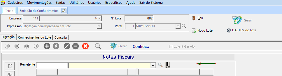 É possível emitir etiquetas para outros documentos, além da Nota Fiscal. Quando a configuração do perfil do usuário estiver marcada, o sistema permite adicionar documentos não fiscais na emissão do conhecimento. Assim, é possível utilizar o coletor de dados para leitura de volumes, quando recebido documentos diversos pelos clientes.