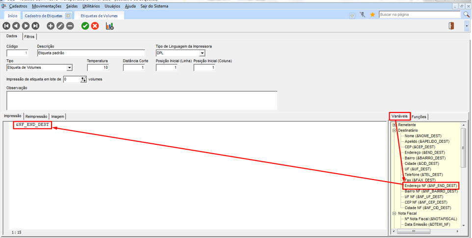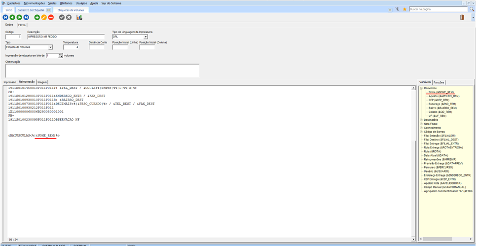 Impressão de Variáveis ou Funções nas Etiquetas