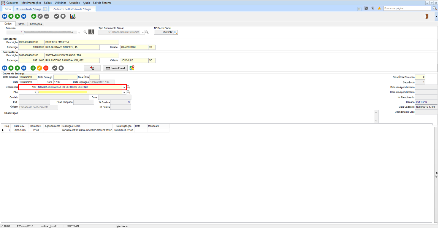 Na tela de Movimento de Entrega, finalizada a entrega do conhecimento.