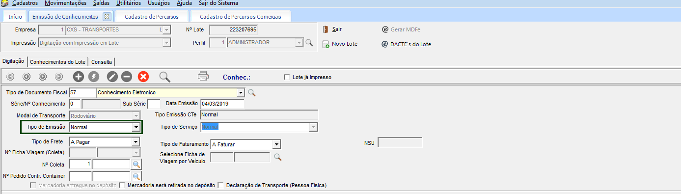 O conhecimento tipo normal é utilizado para prestação de serviços de transporte de mercadorias. A rotina funciona da seguinte forma: