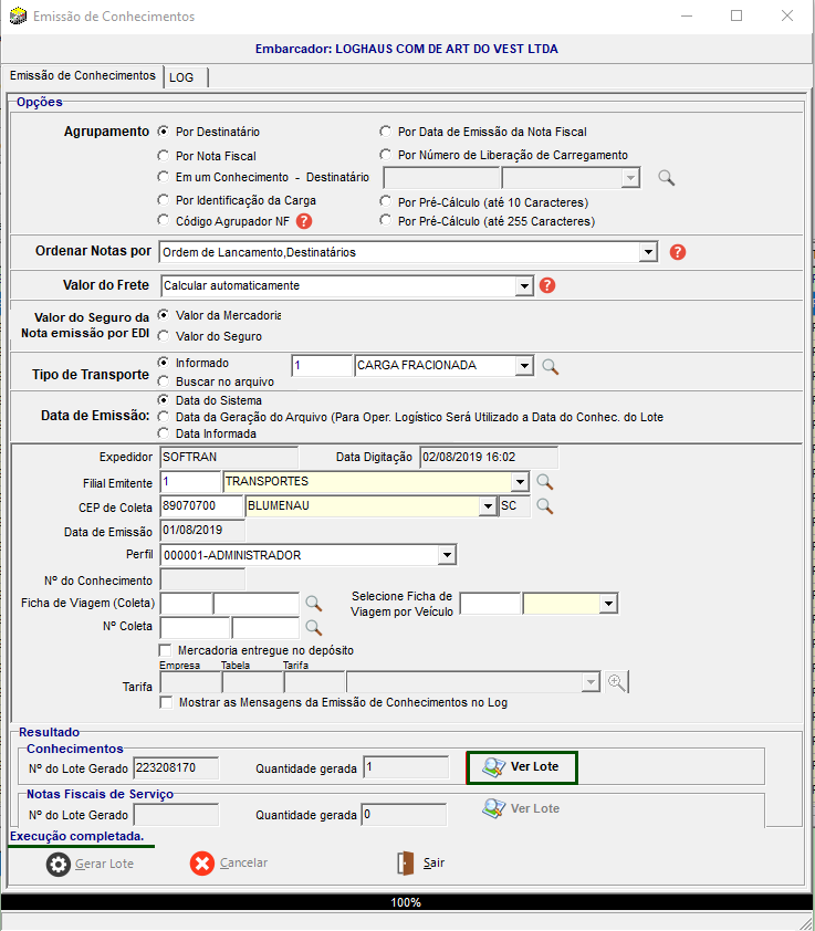 Ao finalizar o processo, verificar o lote gerado