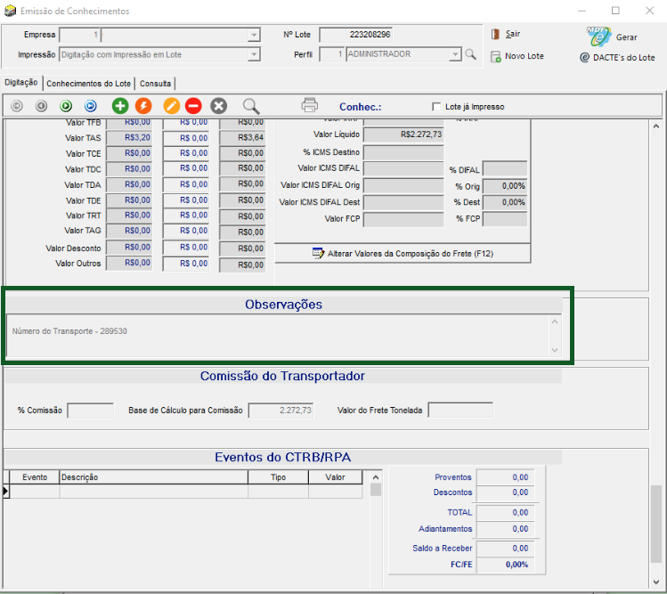 Desta forma, o número do transporte da nota fiscal esteja visível no campo Observação do conhecimento.