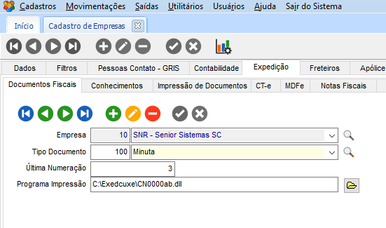 No módulo CFG, em Utilitários > Configurações > TMS > EXP – Expedição > guia Gerais > guia Impressão, incluído a configuração: Imprimir documentos não fiscais em um único lote.