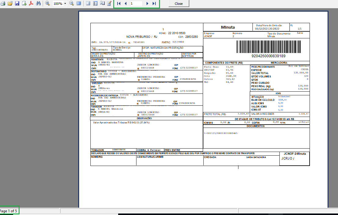 Após configurado na tela de emissão de conhecimentos, quando em um lote tiver vários documentos não fiscais cadastrados, no momento da impressão, destes documentos, o sistema agrupa todos os documentos em apenas uma impressão, ou seja, o usuário verifica por páginas cada documento impressão, fazendo que toda impressão do lote fique agrupada.