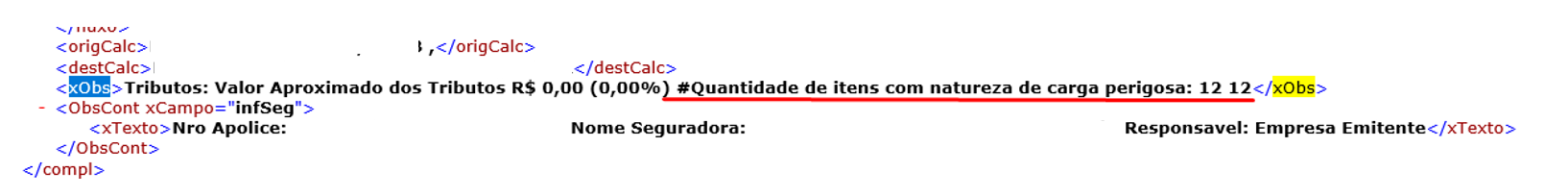 A tag <xObs> apresenta as informações da observação do CT-e também com as informações do manuseio.