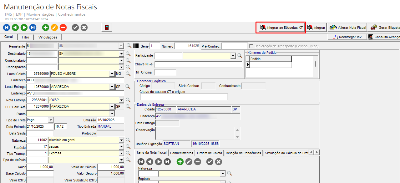A rotina surgiu da necessidade de uma forma prática e autônoma de reenviar a NF-e ao Serviço/Aplicativo de Etiquetas diretamente pela interface do TMS, sem depender de intervenções técnicas. Isso é especialmente importante para garantir que as etiquetas sejam geradas corretamente e que o processo de expedição não seja interrompido.