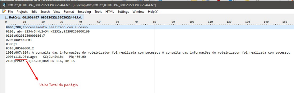 - Exemplo de cálculo do pedágio de acordo com os arquivos dos prints anteriores: