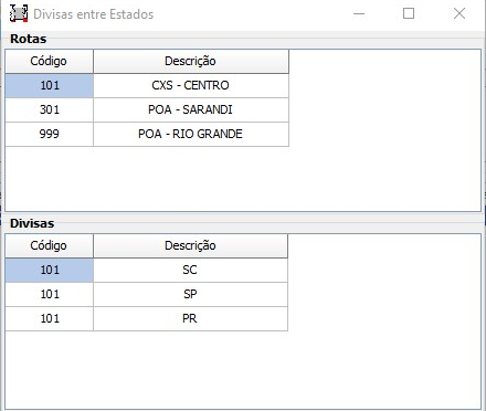 Quando o sistema apresentar a tela de “Divisão entre Estados”, é porque no menu Cadastros > Logística > Rotas > guia Composição > subguia Divisas entre Estados, foi definido na rota informada que existem divisas entre outros estados cadastradas para entrega.
