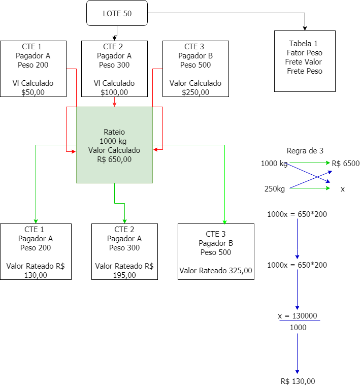 Fator de Rateio: Irá indicar o índice matemático do Documento do CT-e a ser utilizado para fazer regra matemática do rateio dos valores: