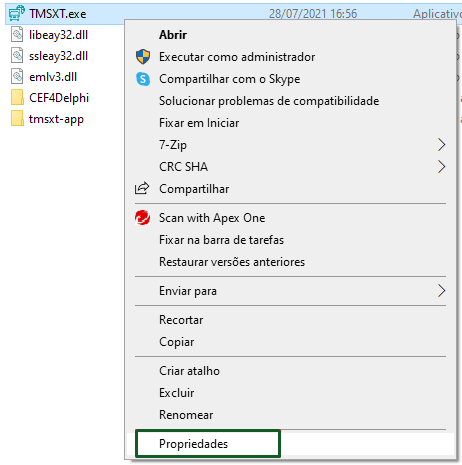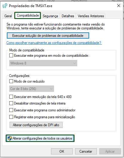 Para executar o TMS XT, é necessário definir a aplicação para que seja executada sempre como administrador, onde o usuário logado também deve ser o administrador da maquina.