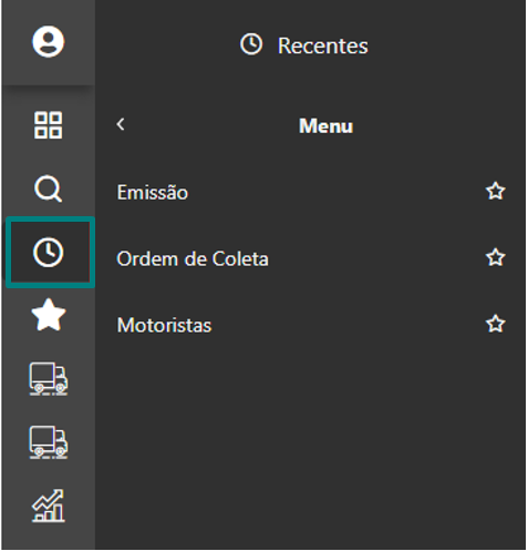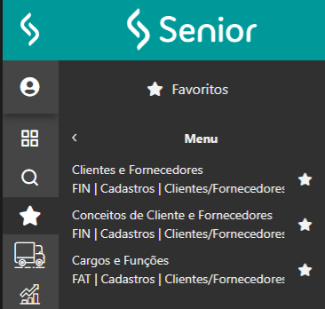 preenchido, estas estarão disponíveis no menu lateral em Favoritos: