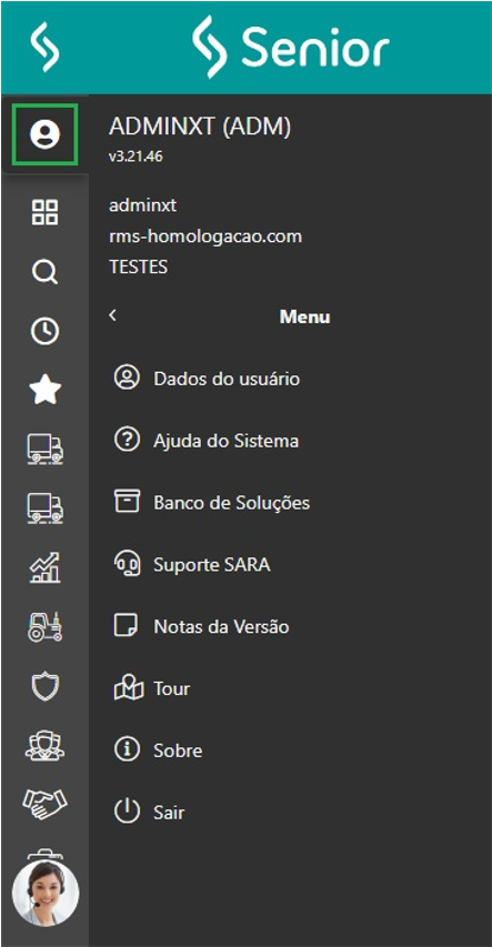 A partir da versão 3.21.01 do TMS XT é possível acessar alguma informações adicionais sobre o sistema diretamente da plataforma, atraves do ícone de Informação do usuário.