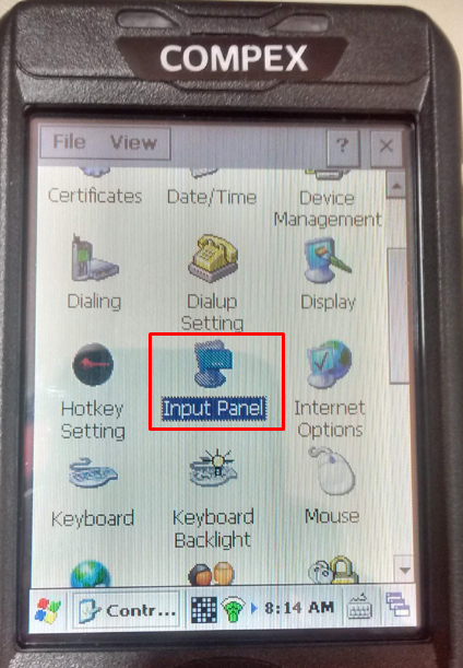 Para configuração, deverá utilizar a aplicação pré instalada “Input Panel”, localizado no Painel de Controle (Control Panel):