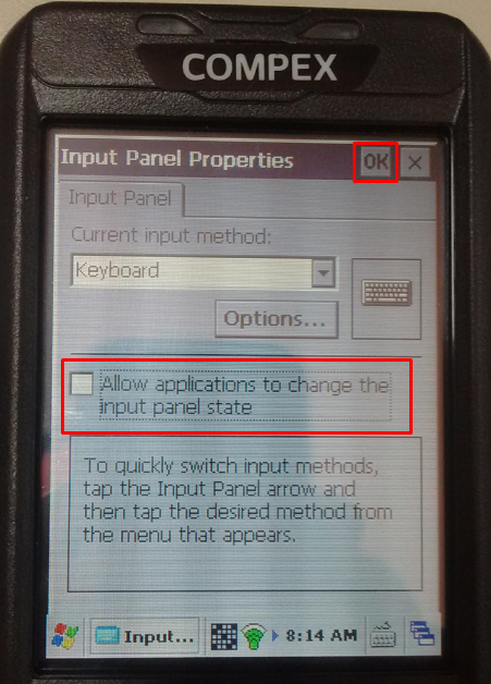Em seguida, demarque a opção “Allow applications to change the input panel state”, clicar no botão OKno canto superior direito, e em seguida, reinicie o coletor: