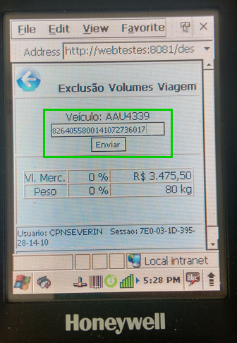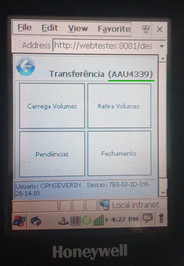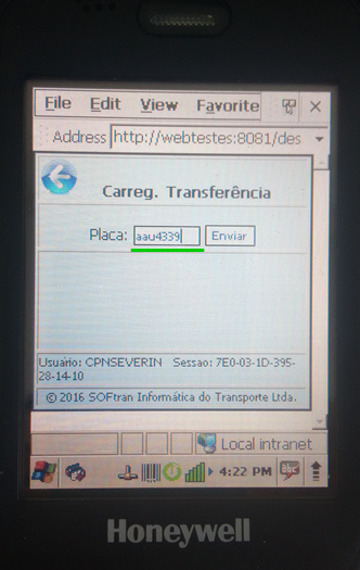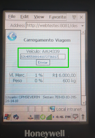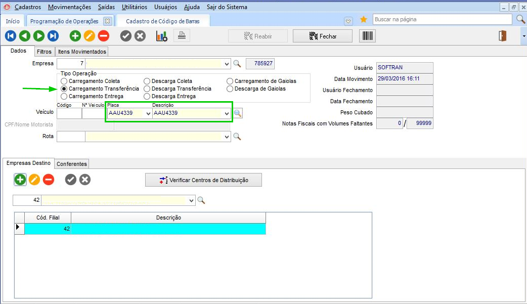No módulo COD realizando um Carregamento de Transferência para o veículo com placa AAU4339
