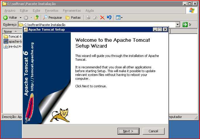 Executar a instalação do Tomcat e clicar em “Next”