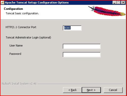 Como padrão a porta do tomcat, na qual ficará rodando os serviços do portal é a porta “8080”, antes de prosseguir lembre se de verificar se esta porta não esta sendo utilizado por outro aplicativo, caso esteja pode ser alterada. Depois de informada a porta clicar em “next”.