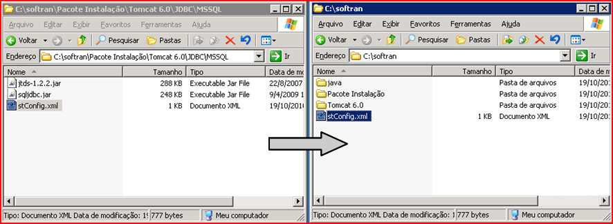 Copiar todos os arquivo da pasta, com exceção do “stConfig.xml”, para a pasta “C:\softran\Tomcat 6.0 \lib”.