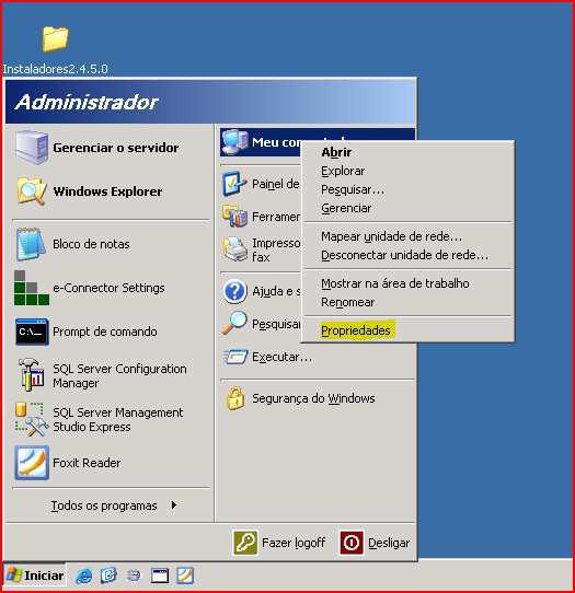 Clicar com o botão direito do mouse em “Meu Com putador” e em propriedades.