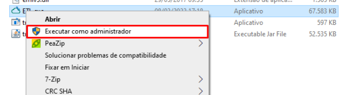 - Clique com o botão direito do mouse sobre o ETL.exe e selecione a opção “Executar como administrador":