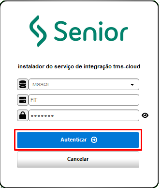 - Após informar o dados solicitados, clique em Autenticar para dar inicio as configurações de instalação do integrador ou em Cancelar para encerrar a instalação.