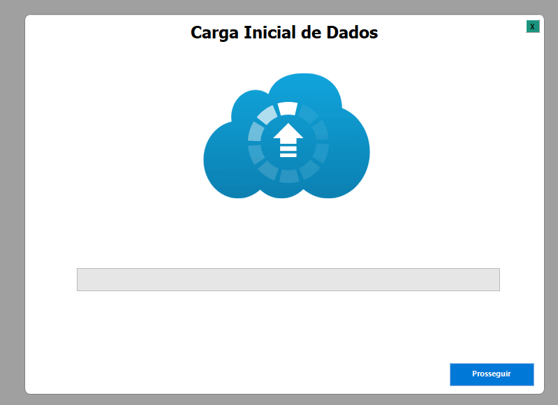 Após logado é apresentado a tela para iniciar a carga de dados na base