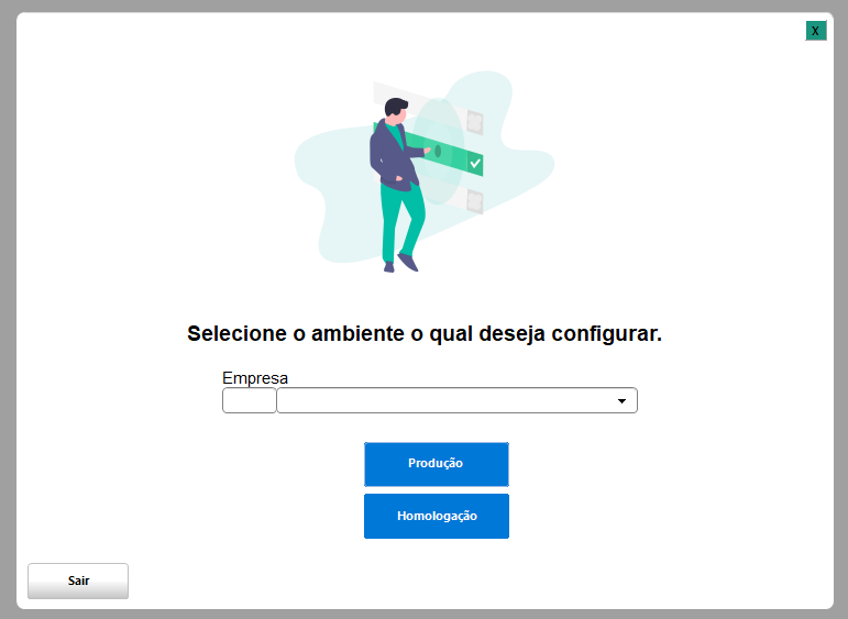 - Após clicar em Autenticar o usuário deverá selecionar a empresa e o ambiente o qual deseja realizar a instalação do integrador: