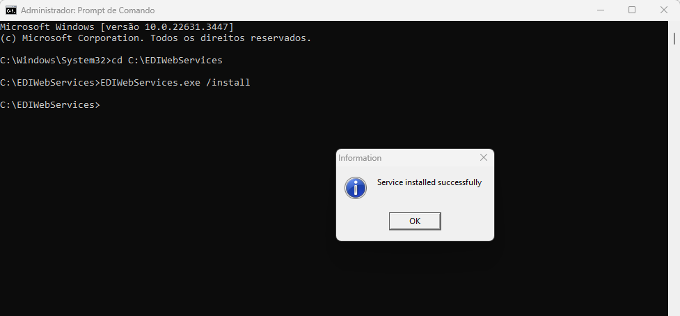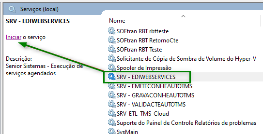 Inicie o serviço do EDIWEBSERVICES: