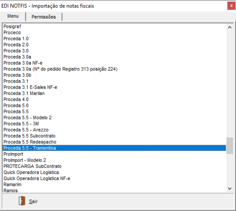 No módulo EXP acesse Movimentações > EDI > Importação de Notas Fiscais > Proceda 5.5 - Tramontina: