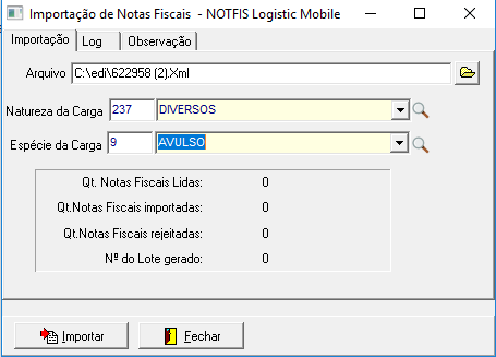 Informe a Natureza e a Espécie da carga e Clique em Importar