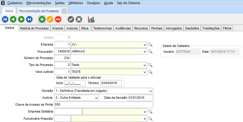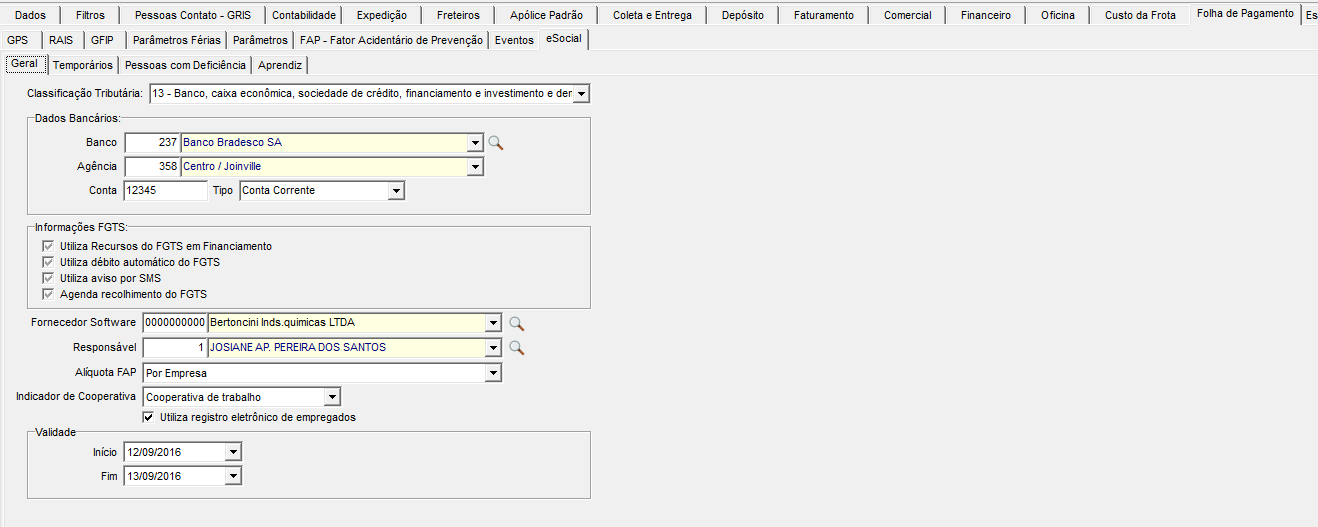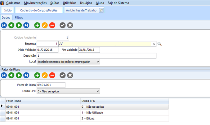 - Validade, o período de validade é válido para o cadastramento inicial e define por quanto tempo a informação será válida, em casos onde o prazo não for definido basta informar a validade final igual a validade inicial;