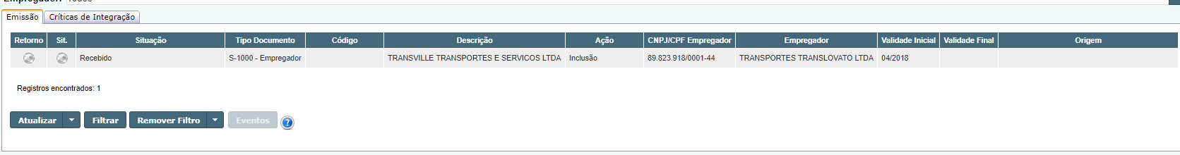 Após a geração do arquivo é possível abrir o eDocs e verificar se o arquivo foi aceito, quando existirem problemas na integração entre o SOFtran e o eDocs o arquivo será apresentado na guia Críticas de Integração