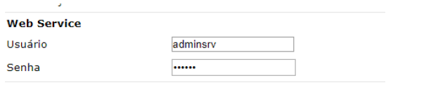 No cadastro da Empresa deve ser configurado na guia Integração, no quadro Web Service, os campos Usuário e Senha