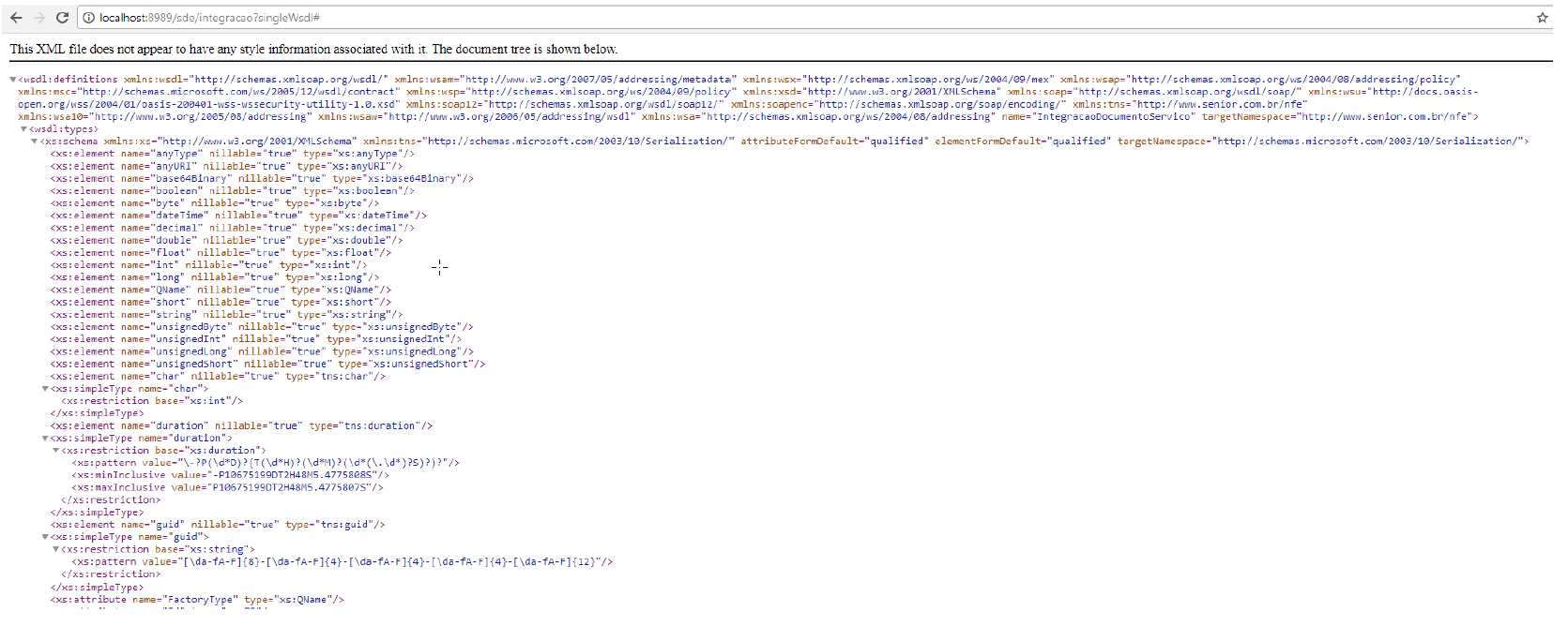 Se o XML do WSDL foi carregado, isso significa que foi realizado o acesso ao WebService. Agora pode ser configurado o acesso dento do Senior Logística .