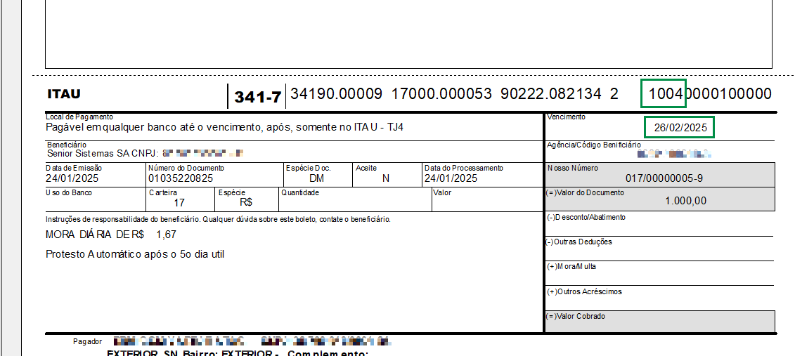 - Campo Beneficiário: terá o CNPJ de acordo com a empresa emitente do boleto