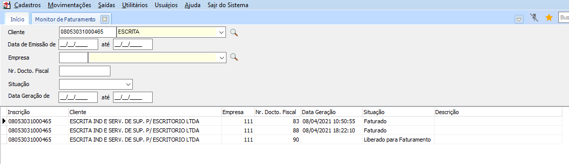 - Pendente de Faturamento (autorizado SEFAZ e Liberado para Faturamento)