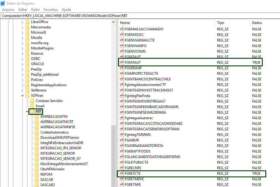 Para isto, o RBT deve estar instalado corretamente. Após as instalções inicais, acesse o regedit, e marque como true as opções FGFATAUT e FGRETCTE. Onde, a função destes é gerar autorização do CTe e gerar o faturamento automaticamente.