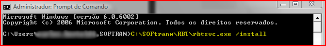 Abra o Prompt de Comando e execute o comando C:\SOFtranw\RBT\rbtsvc.exe /install
