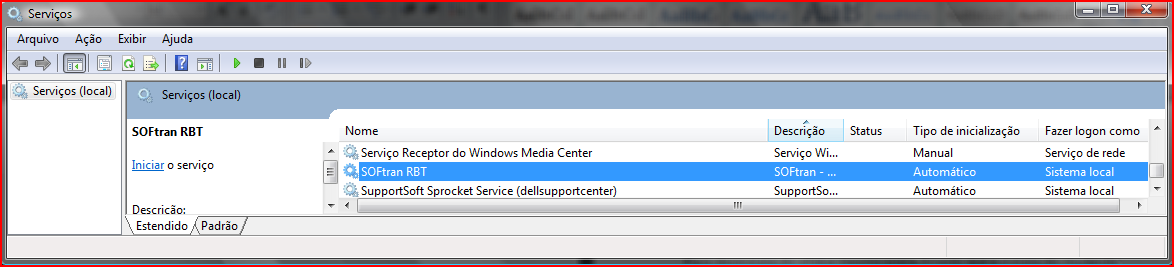No serviço do Windows será criado o serviço SOFtran RBT.