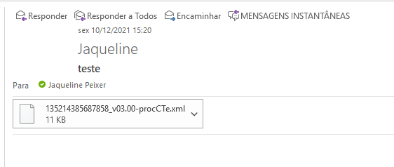 Da mesma forma, no diretório da empresa emitente do documento é criado uma pasta chamada Pendente, e transfere o XML do e-mail para esta pasta.