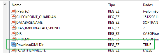 No regedit, marcar o serviço FGDOWNLOADXMLPDFSENIOR como TRUE