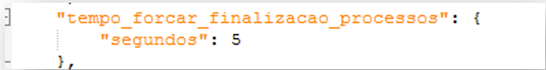 O objeto tempo_forca_finalizacao_processos representa a janela de tempo em que o WatchdogTMS durante a tentativa de inicializar um serviço e não obter êxito, o serviço é fechado automaticamente.